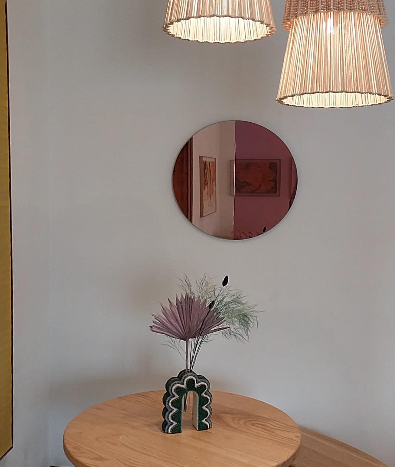 Inspired by Lichen found in nature, the unique handmade glass top patina